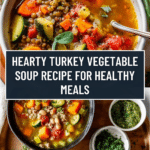 A hearty and flavorful Turkey Vegetable Soup packed with ground turkey, a variety of fresh vegetables, and aromatic spices. Perfect for a nutritious, comforting meal that’s flexible and easy to prepare on the stovetop or slow cooker.