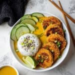 This Vegan Katsu Curry is a flavorful and comforting dish that features crispy fried sweet potato and eggplant slices coated in a golden breadcrumb crust, served with a rich and creamy homemade curry sauce made from fresh vegetables and fragrant spices. Perfect for a satisfying plant-based meal that brings warmth and bold flavors to your table.