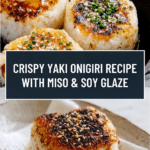 Yaki Onigiri (焼きおにぎり) are Japanese grilled rice balls that are crispy on the outside and tender on the inside, flavored with either savory miso or soy sauce glazes. This recipe offers two delicious variations, perfect as a comforting snack or side dish, featuring a delightful combination of umami seasonings and garnishes like sesame seeds and chopped chives.